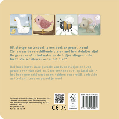 Er is veel te ontdekken in het nieuwe 'Mijn puzzelboek – Tel je mee?' van Little Dutch. Haal tijdens het lezen de puzzelstukken uit het boek en ontdek wie er achter de raampjes van de verschillende...
