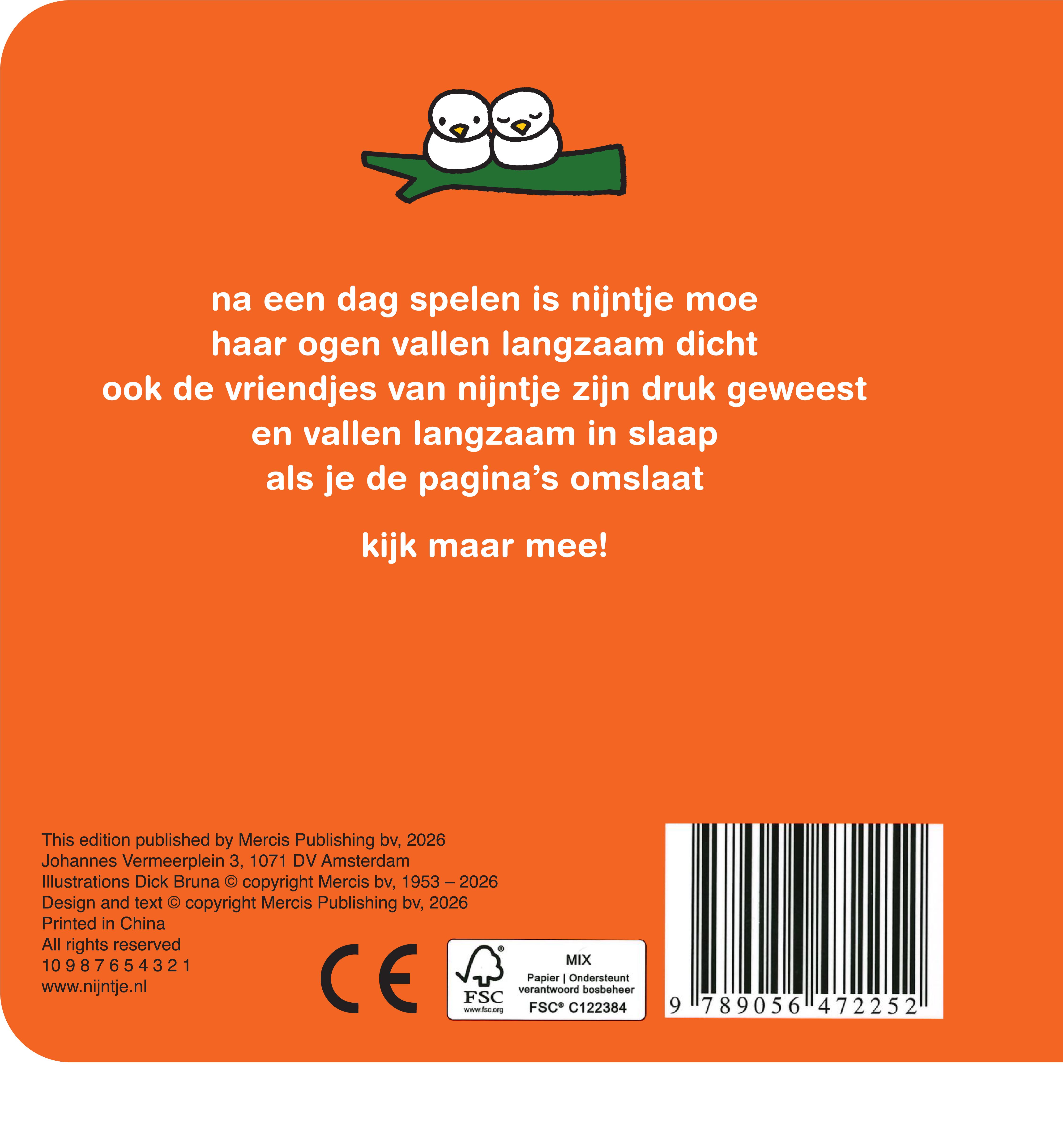 Als je de stevige pagina’s van dit kartonboek omslaat, vallen nijntje en haar vriendjes één voor één in slaap. Het lamellenvenster zorgt op elke pagina voor een verrassingseffect: de oogjes gaan van open naar dicht. Leuk om steeds opnieuw te bekijken!
