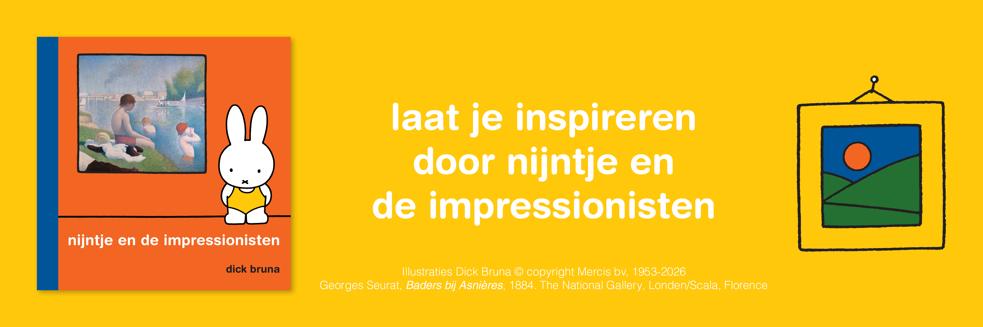 Ontdek samen met nijntje nieuwe kunstenaars! In nijntje en de impressionisten maak je kennis met schilders zoals Edgar Degas, Claude Monet en Mary Cassatt. Zie jij de overeenkomsten tussen hun schilderijen en de tekeningen van Dick Bruna?